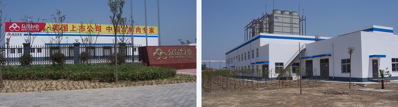 年產(chǎn)10萬噸,總存儲量3044噸,涵蓋凍結(jié)間、凍結(jié)物冷藏間、屠宰車間冷卻間、副產(chǎn)品冷卻間、鮮白條發(fā)貨間、鮮品配送發(fā)貨間,共計(jì)20間,采用氨(R717)制冷系統(tǒng),熱氨加水融霜,掃霜加定期熱氨排油,熱氨融霜。