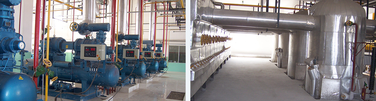 年產(chǎn)20萬噸標(biāo)準(zhǔn)化肉類,總存儲噸位2362噸,涵蓋凍結(jié)間、快速冷卻間 、冷藏間、冷卻間、胴體發(fā)貨間、副產(chǎn)暫存發(fā)貨間、鮮品儲藏間、副產(chǎn)品儲藏間、內(nèi)轉(zhuǎn)產(chǎn)品儲藏間,共計33間。制冷系統(tǒng)采用氨制冷系統(tǒng),末端冷風(fēng)機(jī)加排管。