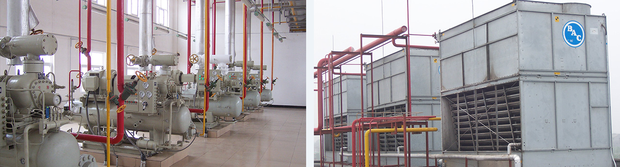 凍結(jié)間11間、共120噸。冷藏6間、共2000噸。冷卻平衡間5間、共110噸/小時。冷卻間2間,共22噸/20h。成品庫三間,共500噸/24h??照{(diào)系統(tǒng) 1000KW。年產(chǎn)16萬噸無公害豬肉,使用氨制冷系統(tǒng),末端冷風(fēng)機(jī)加排管。
