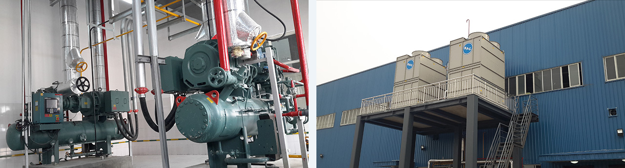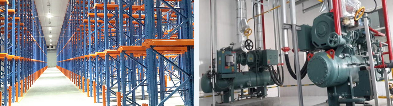 一座單層鋼結構冷庫。本項目為固定貨架裝配式冷庫,采用封閉式降溫穿堂(3±2°C)。1號、2號冷庫庫溫-18°C~-22°C,存儲6014噸。3號冷庫庫溫5°C,容量為229噸。降溫穿堂溫度為3±2°C。采用氨(R717)制冷系統,末端吊頂式冷風(fēng)機,手指令自動(dòng)熱氨融霜。